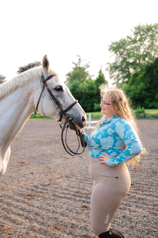 Super high quality shirt with a thicker athletic material while still being super breathable and comfortable! A really flattering color that pairs well with any of Thiandro’s riding leggings.