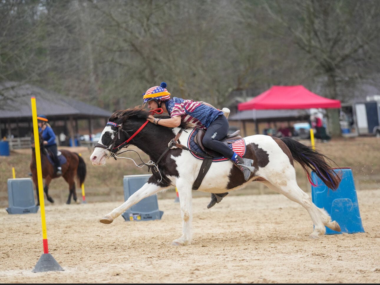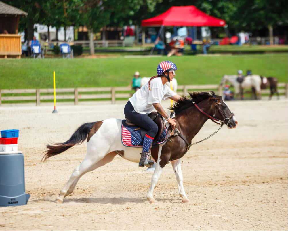 We wear them for mounted games (stunt racing on ponies)