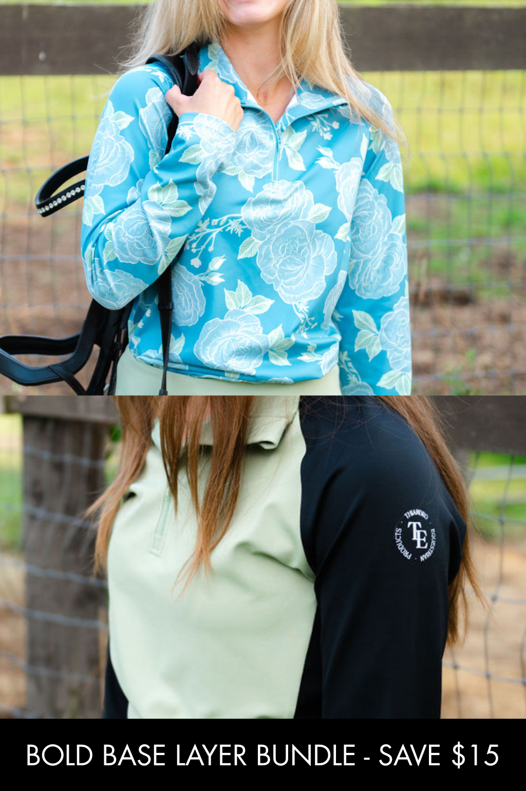 The Bold & Bright Bundle pairs our romantic Rose Garden base layer with the timeless Sage base layer. One neutral, one floral — two unique styles to take you from everyday rides to springtime events.